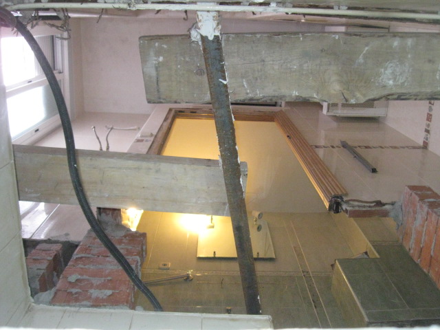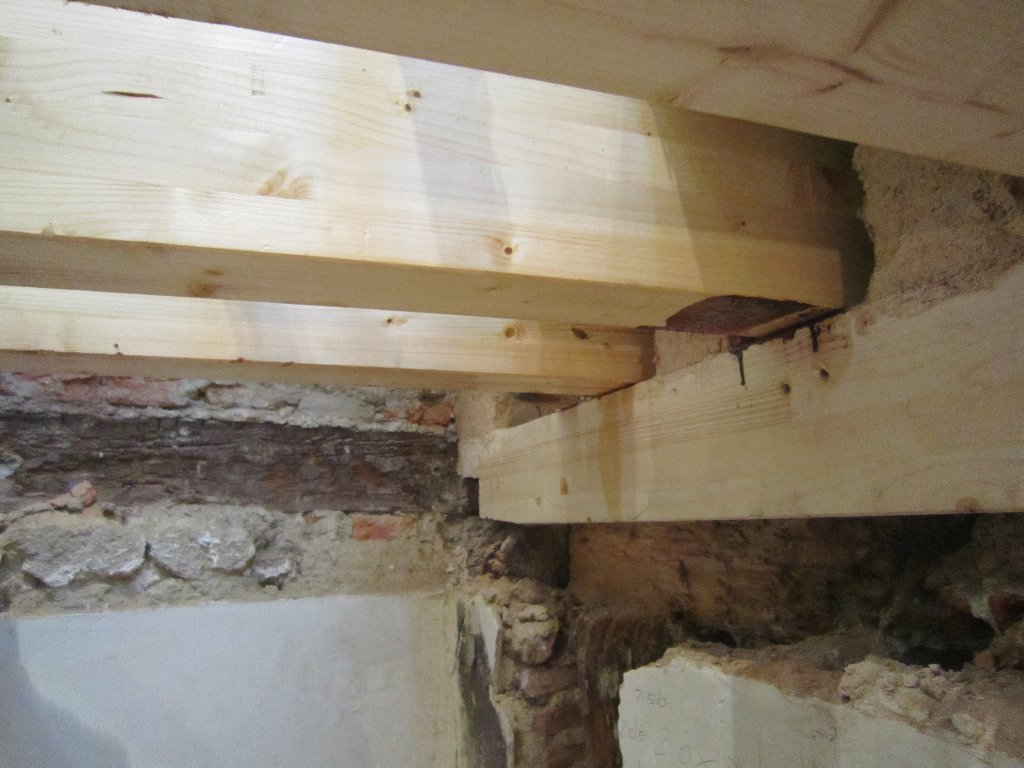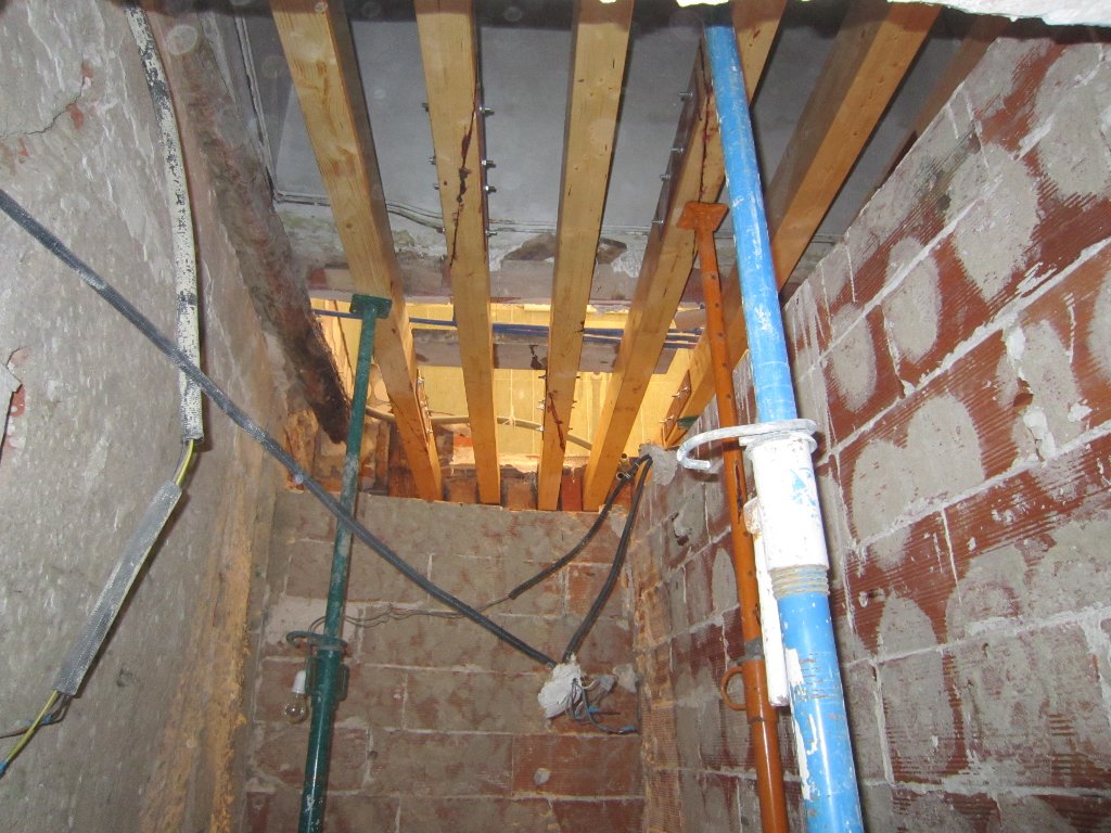 Previamente, y mediante técnicas de apeo, somos capaces en la mayoría de los casos de conservar las tabiquerías que descansan sobre los forjados a rehabilitar. Esto nos permite reducir los costes, al no tener que reponer posteriormente ni dichas tabiquerías ni instalaciones o revestimientos (alicatados, etc.).