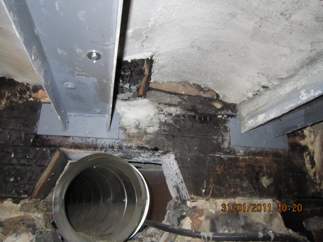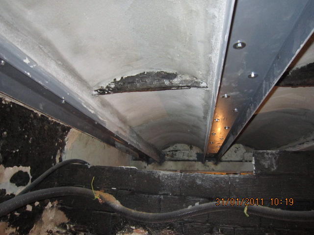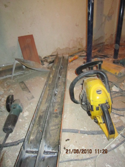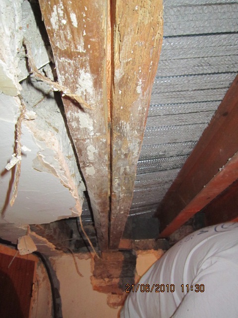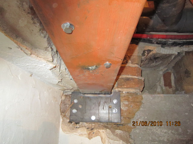Para colocar los refuerzos metálicos (viguetas compuestas por un perfil en "U" al que se le suelda una aleta central y se le practican perforaciones para unirlo a la madera) se realiza una acanaladura en el centro de la vigueta mediante una sierra mecánica. En el hueco, relleno con resina epoxi, se introduce la parte de la aleta del refuerzo metálico, colocando los tornillos de unión que conectan el refuerzo y la vigueta. El conjunto se conecta en sus extremos mediante soldadura a placas metálicas, fijadas mecánicamente al muro o carrera sobre el que descansan las viguetas rehabilitadas.